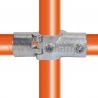 Raccord tubulaire Croix 90° bis, référence 119A, avec une double galvanisation de protection pour un assemblage tubulaire sans soudure. Compatible pour fixer 3 tubes.