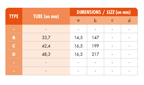 Choose the size of the adjustable cross, middle rail 30-45° tube clamp fitting, reference 130, according to the diameter of your tubes.
