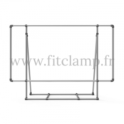 Puede optar por fijar los soportes en el suelo o utilizar bloques de hormigón para que actúen como lastre. La estructura del expositor de gran formato para lona tensada de estructura tubular reutilizable y modificable aportará soluciones regulares a sus anuncios. Desde la presentación de futuras obras en el sector inmobiliario hasta la exposición de mensajes publicitarios, pasando por una simple imagen de su cartel, todas las ideas encontrarán sus soportes.